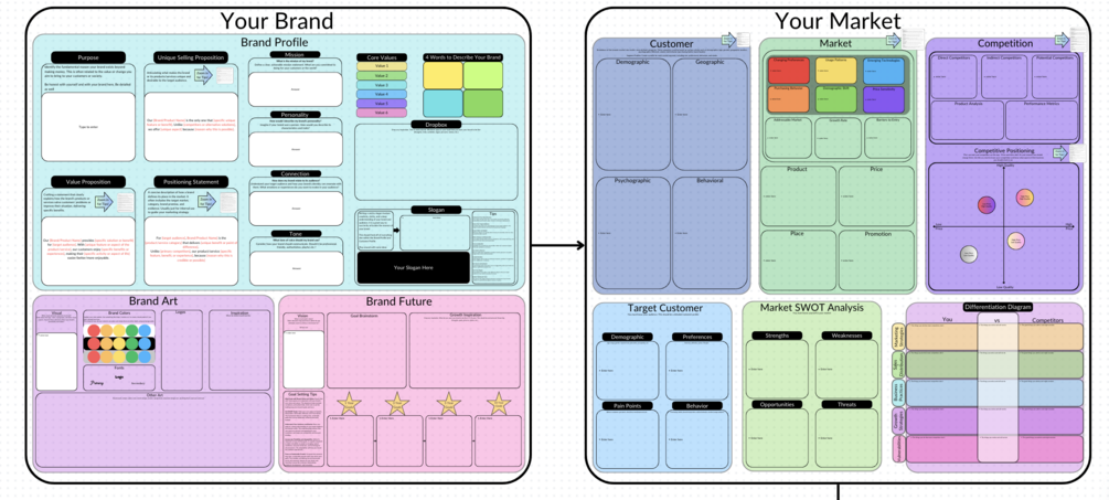 That's where our solution, the Brand Buddy System, steps in to transform your marketing strategy. We have built a template in a Canva whiteboard that is an all-in-one tool for managing your brand strategy.